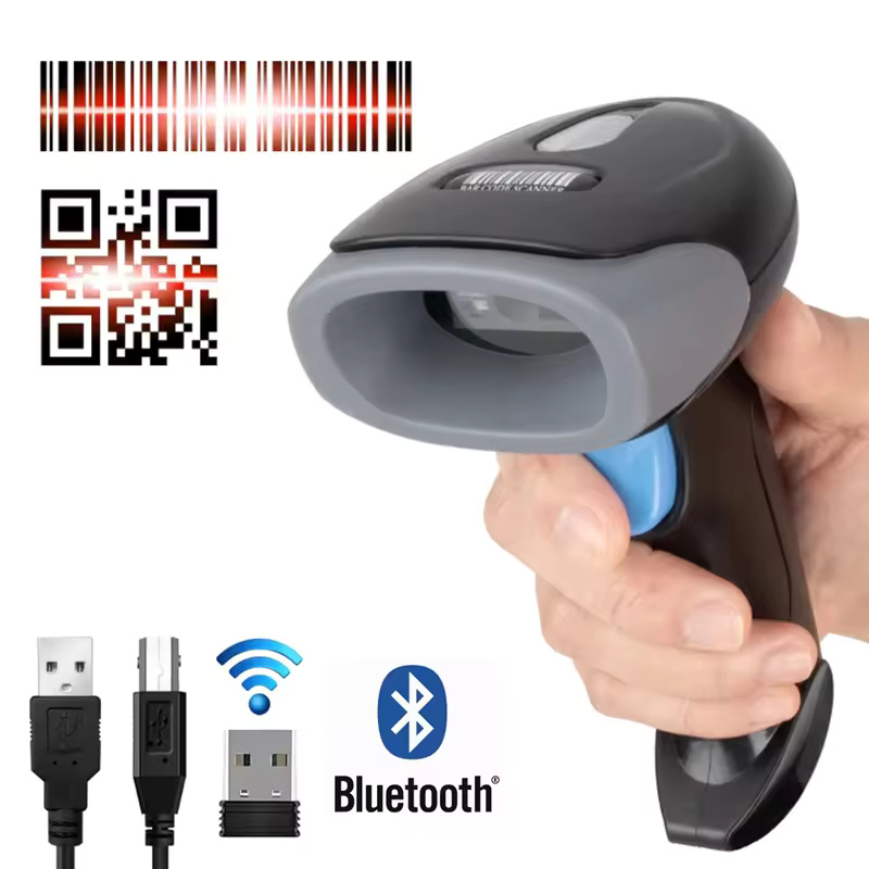 1D/2D Barcode Reader – USB, Wired/Wireless, 2.4G, WiFi & Bluetooth Handheld Scanner | High-Speed Decoding for Barcodes & QR Codes