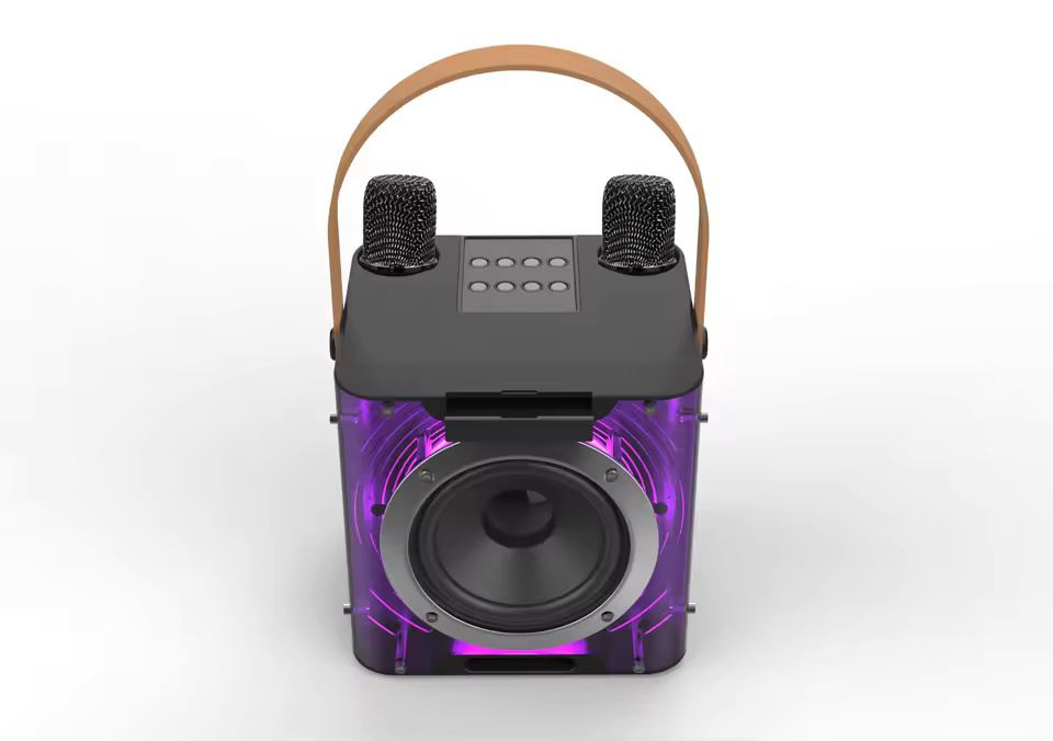 High-Power Bluetooth Karaoke Speaker – 360° Stereo Sound, Music Rhythm Lights & Dual Wireless Microphones | Built-in Phone Holder